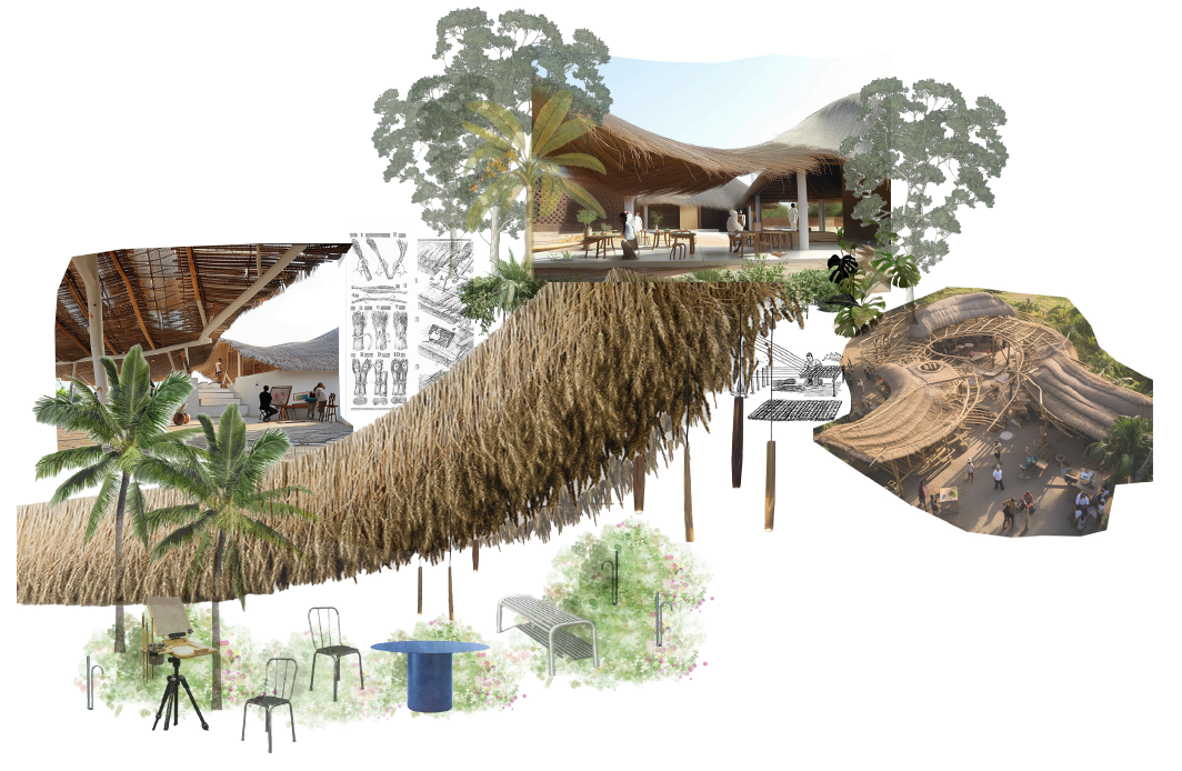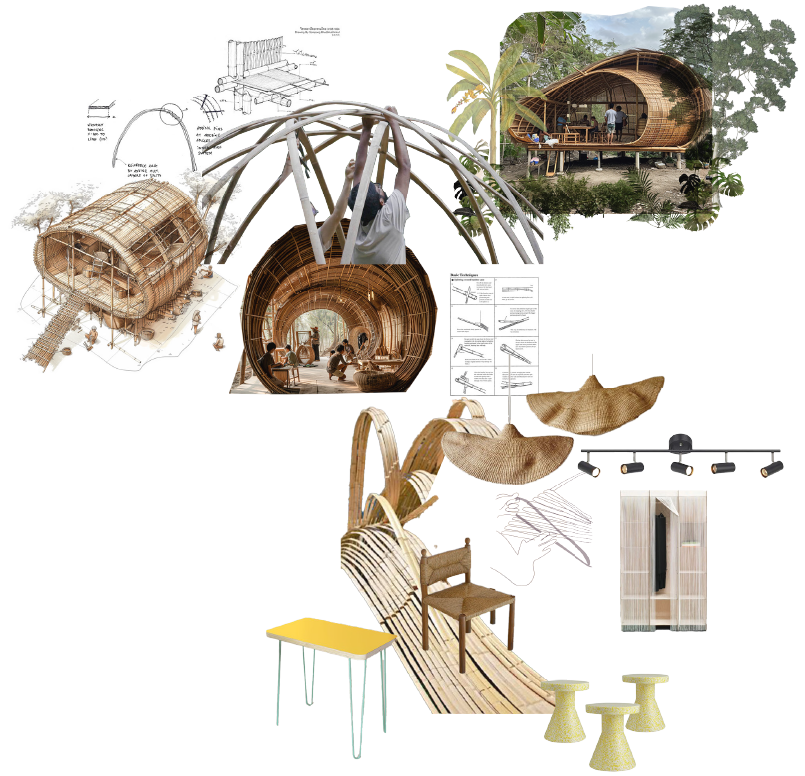 Incorporates organic forms and curves, facilitating artistic learning with bamboo for creating tools, crafts and furniture, while also teaching wicker weaving techniques.